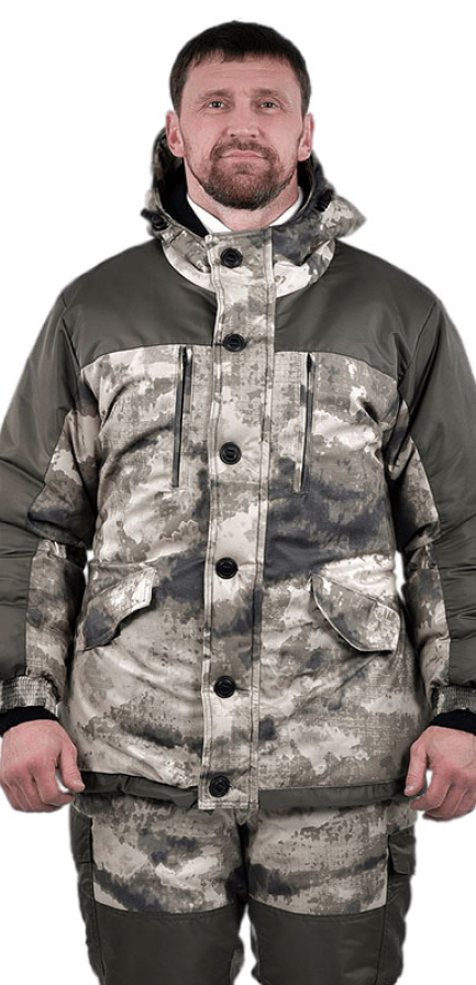 Доступен выбор зимних костюмов в серых и черно-белых тонах, цвета хаки и камуфляж. Расцветка одежды подобрана таким образом, чтобы не выделять охотника или рыбака на фоне окружающего пейзажа. Широкий размерный ряд позволяет подобрать исполнение для человека любой комплекции и роста.