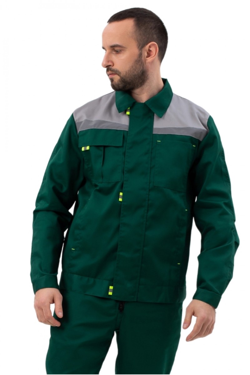 На груди два накладных кармана: с вертикальной застроченной складкой и с отделением для ручки. Внизу два кармана в рельефных швах.